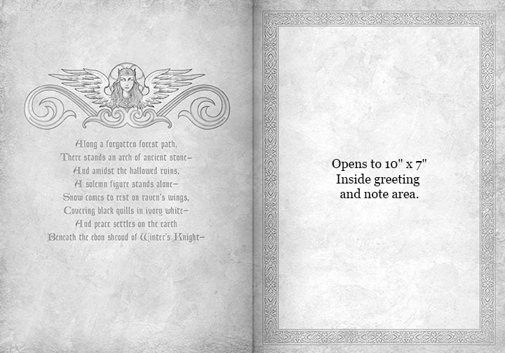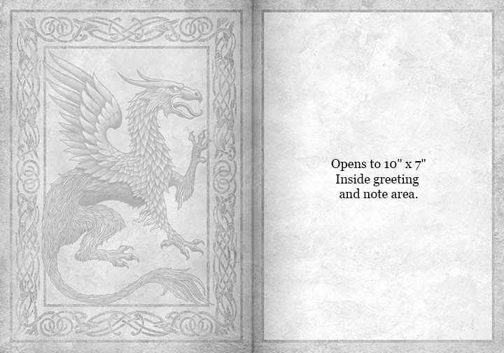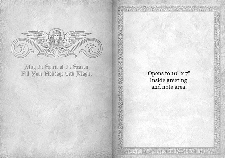Card Size: 5" x 7" printed full color on 100lb cover stock; interior artwork printed in gray on parchtone backgound. *Click on a card to see inside.